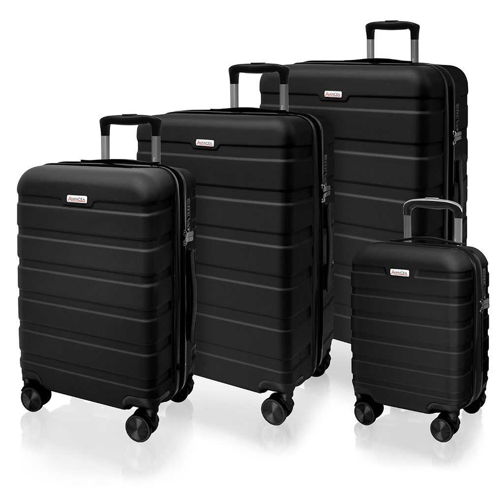 Sada 4 skořepinových cestovních kufrů velikosti XS, S (malé kabinové / příruční), M (střední) a L (velký) se všemi přednostmi české chráněné designové značky AVANCEA®:
